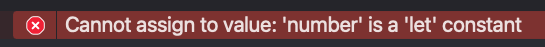 위의 예제처럼 함수 매개변수 값을 변경하려고 하면 let으로 선언된 변수의 값을 수정할 때와 동일한 컴파일 에러 메세지가 출력됩니다.