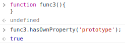 func3 함수 객체를 생성해서 hasOwnProperty() 메소드로 prototype 프로퍼티를 소유하고 있는지 확인하면 true값이 나온다.