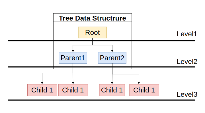 Tree 자료구조에서 같은 깊이를 가지는 노드들을 묶어서 레벨로 표현한다. 루트 노드 부터 깊이가 0인 경우 레벨 1, 깊이가 1인 경우 레벨 2로 표현한다. 같은 레벨에 존재하는 노드들은 형제노드(Sibling Node)로 표현한다.