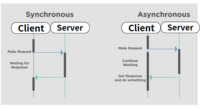 동기식 프로그래밍은 클라이언트는 서버에 자원을 요청하고 응답을 받을 때 까지 아무런 일도 하지 않고 응답만 기다린다. 반명 비동기식 프로그래밍은 서버에 요청 후 응답을 기다리는 시간 동안 다른 일을 처리할 수 있다.