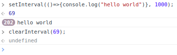 const timerId = setInterval(()=>{console.log("hello world")}, 1000);