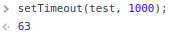 브라우저 환경에서 setTimeout 함수를 실행하면 고유한 타이머 id를 반환한다. 63이 타이머 id다.
