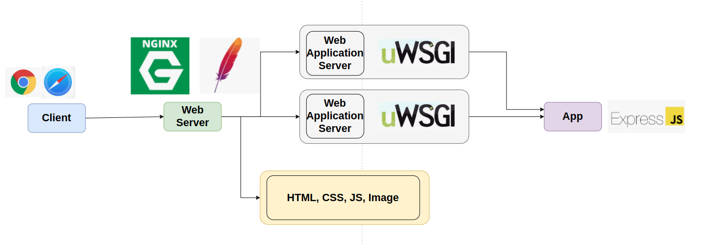 웹 어플리케이션 서버는 App을 구동하고, DB에 접근해서 데이터를 처리하는 등 많은 프로세스가 처리된다. 이 때 단순히 정적인 데이터를 처리하기 위해서는 웹 서버만으로 충분하다. 정적 리소스 까지 웹 어플리케이션 서버에서 담당한다면 서버에 부담이 커진다.