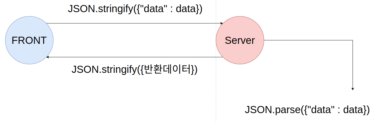 서버에서는 프론트에서 받은 데이터를 JSON.parse() 한다음 필요한 로직을 처리하고 다시 JSON.stringify() 함수로 JSON으로 변경한 뒤 프론트로 보내준다. 이 때 프론트에서, then으로 데이터를 받은 다음 data.json()을 사용해서 파싱하게 된다.